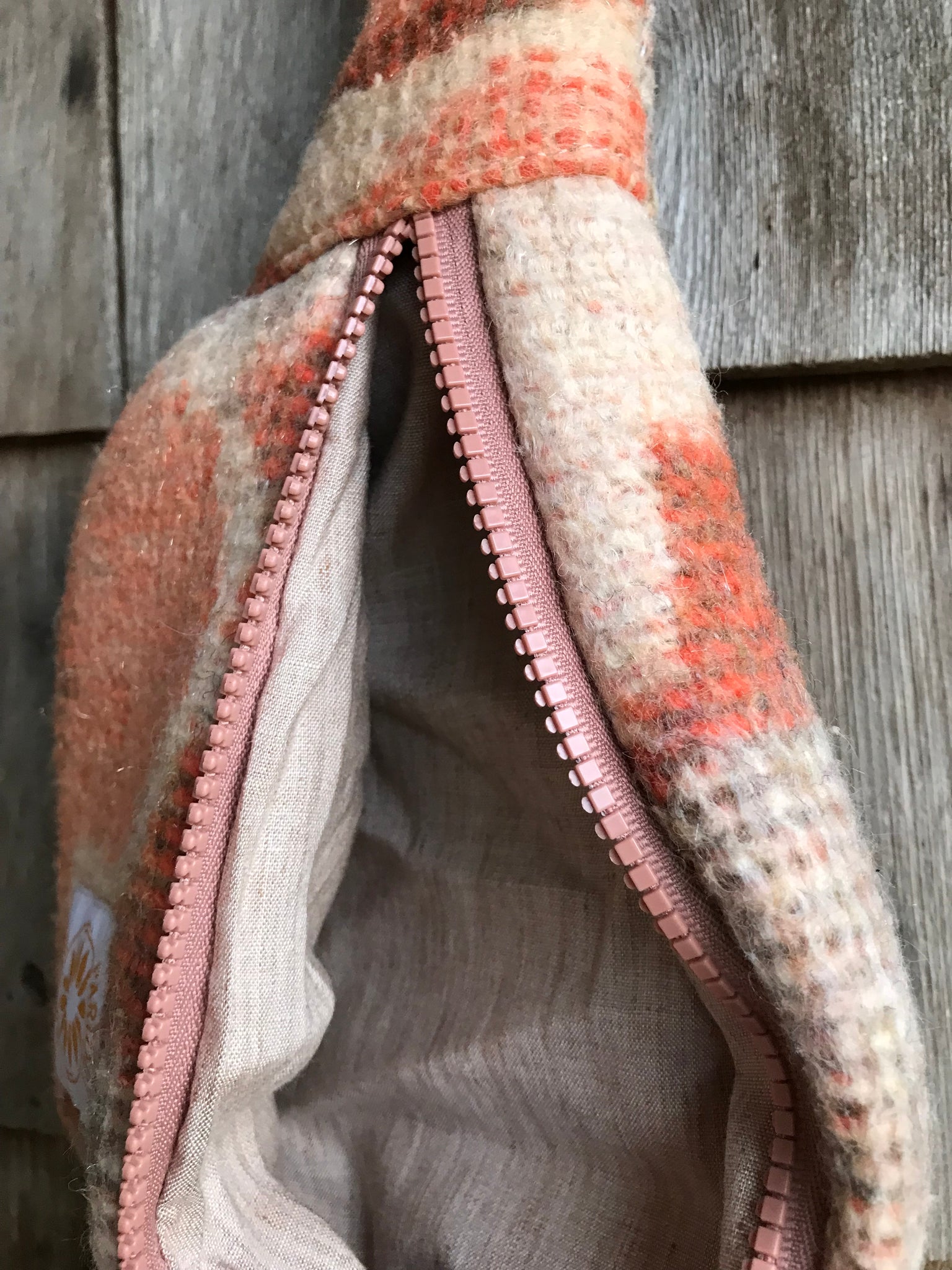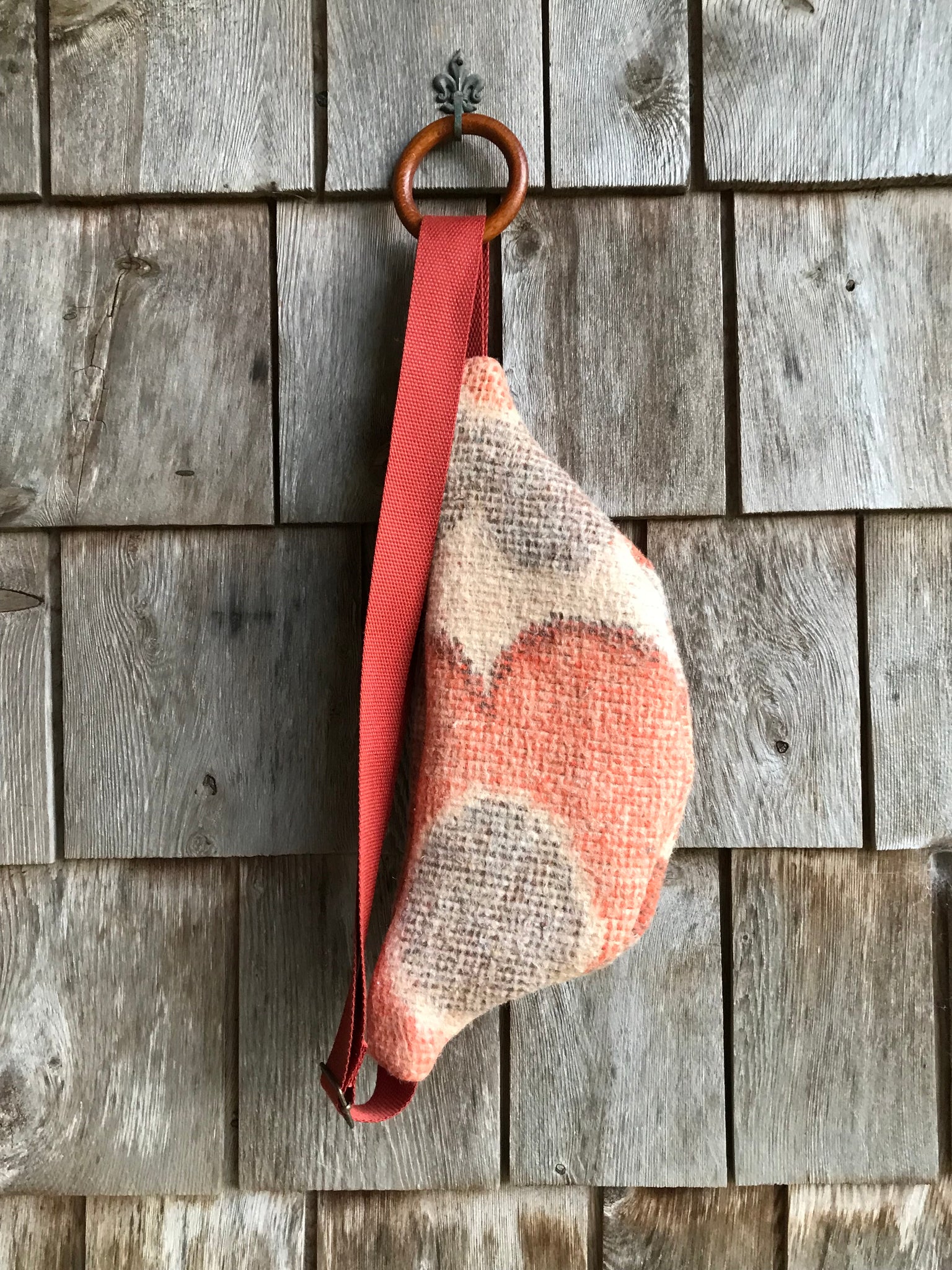 Jolie petite Banane réalisée en chutes de couvertures laine.