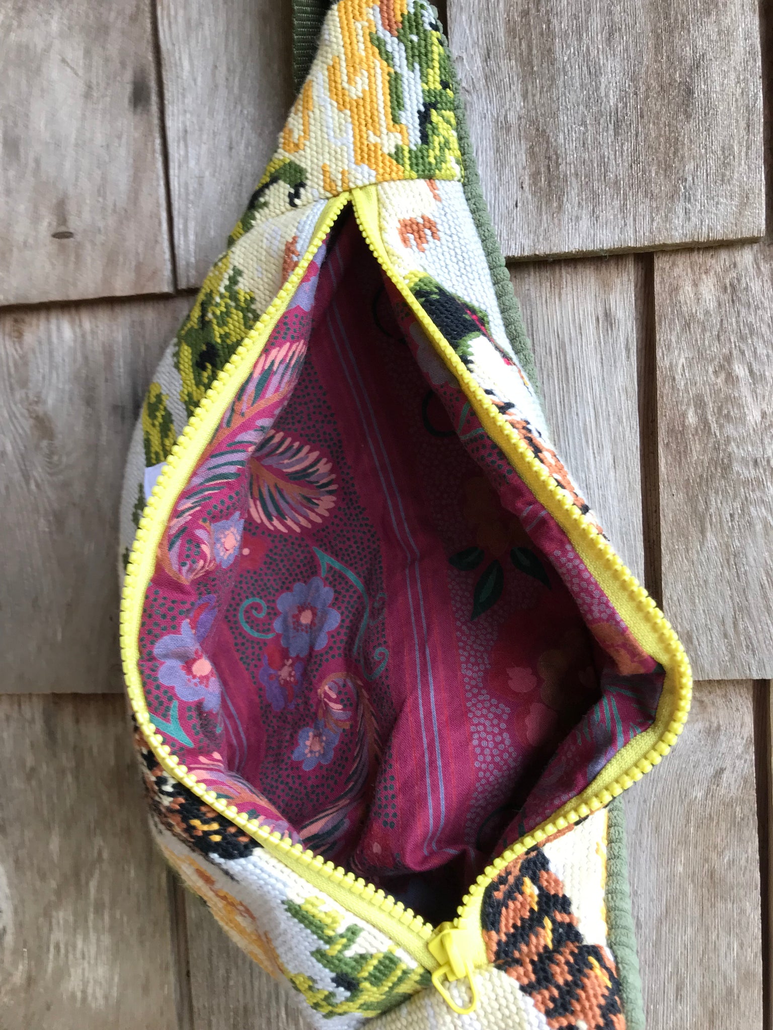 Jolie petite Banane réalisée en canevas (broderie chinée, faite à la main) et velours.