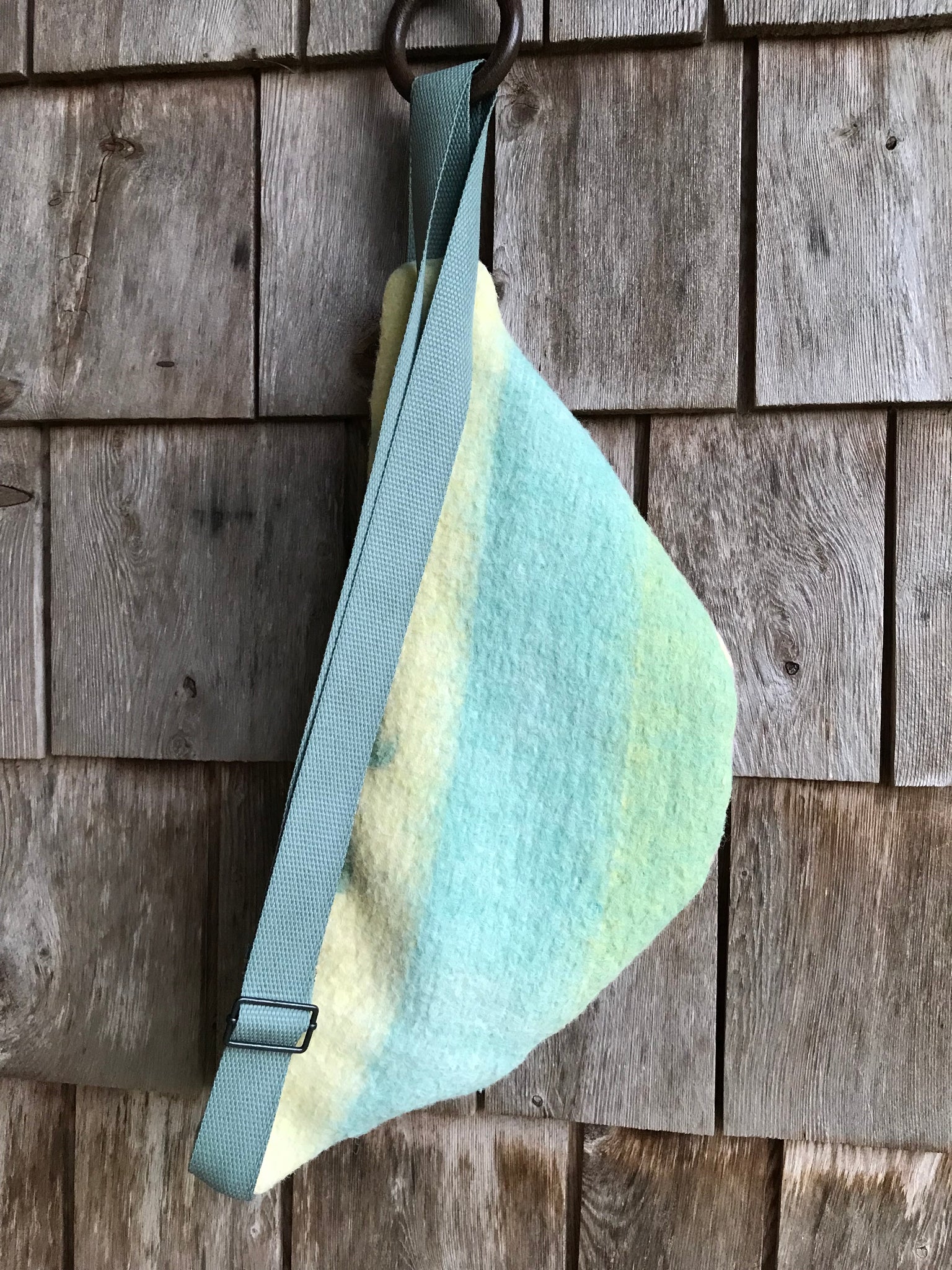 Jolie petite Banane réalisée en chutes de couvertures laine.