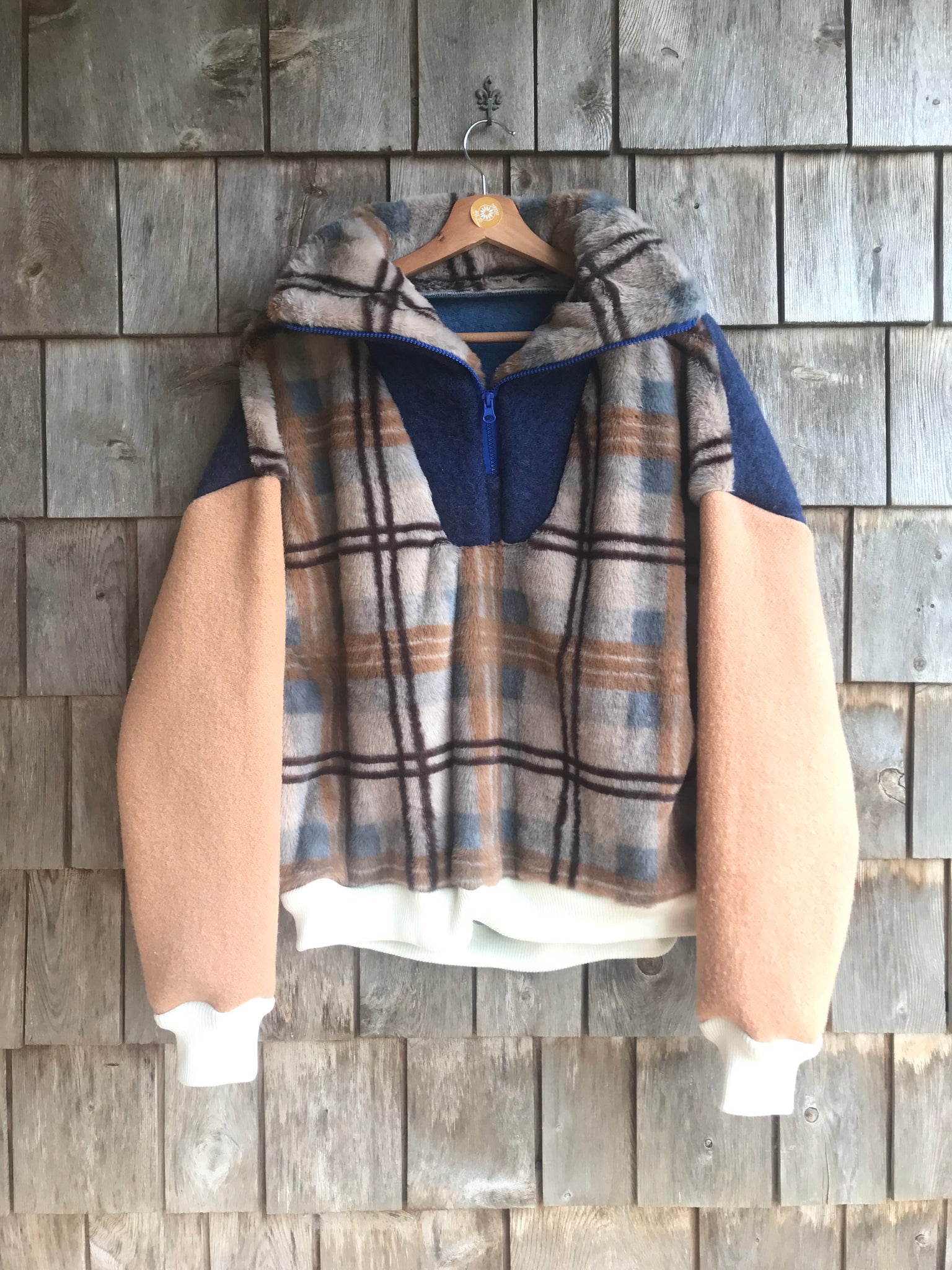 Pull à fermeture, col camionneur.Réalisé à partir de couvertures vintage laine et de fourrure colorée très très douce