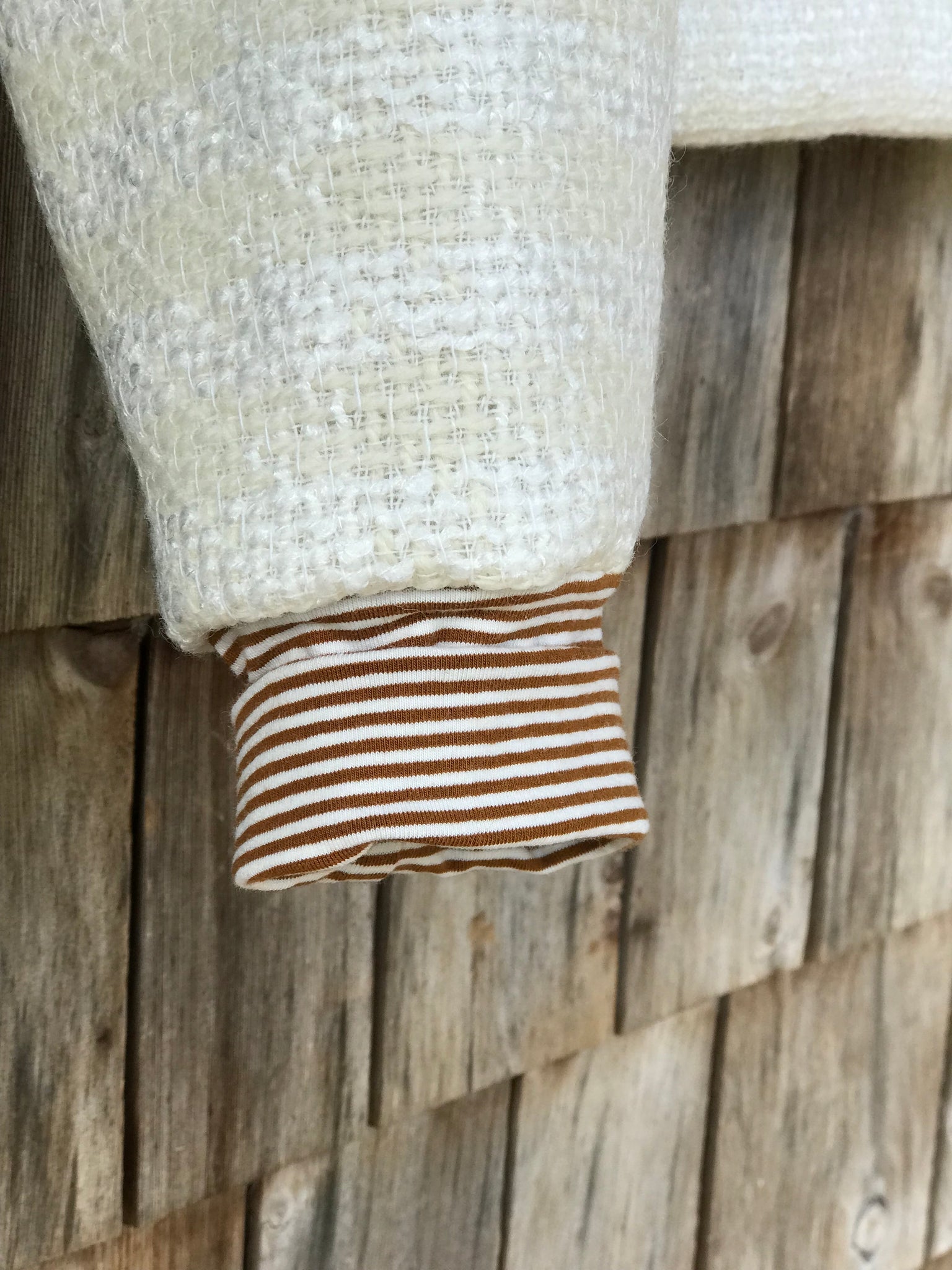 Pull à fermeture. Réalisé à partir de tissus vintage revalorisés /lainage et couverture (pour le col )