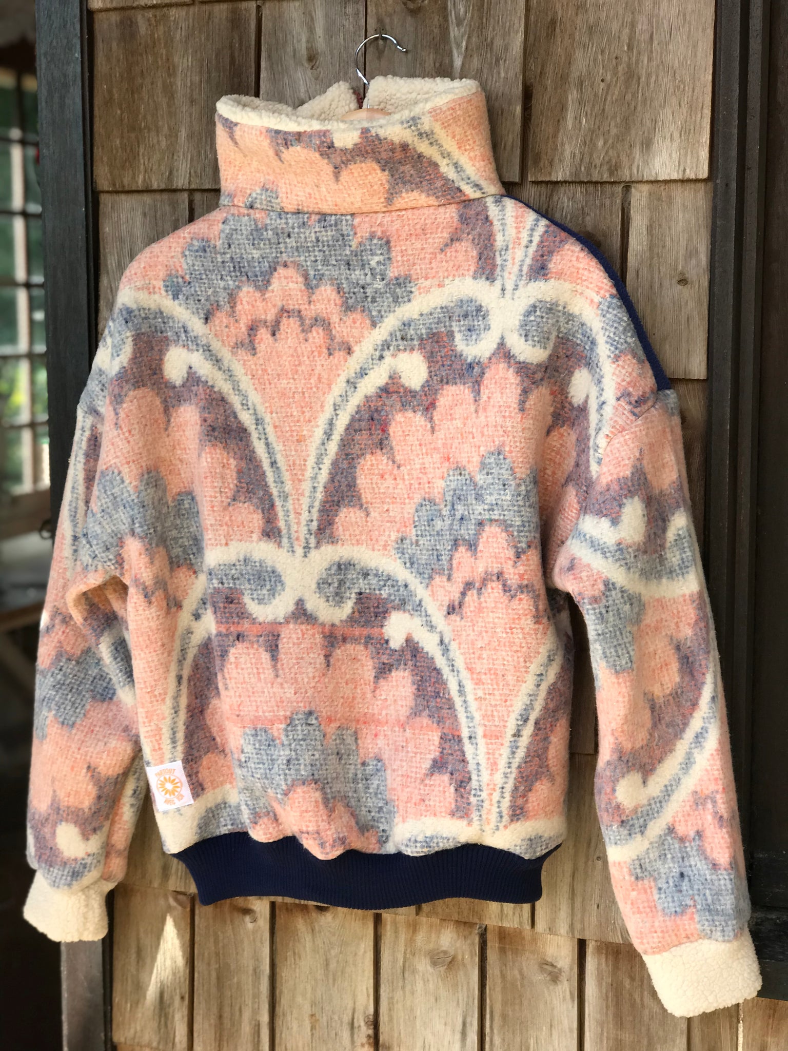 Pull à fermeture, col camionneur.Réalisé à partir de couvertures revalorisées