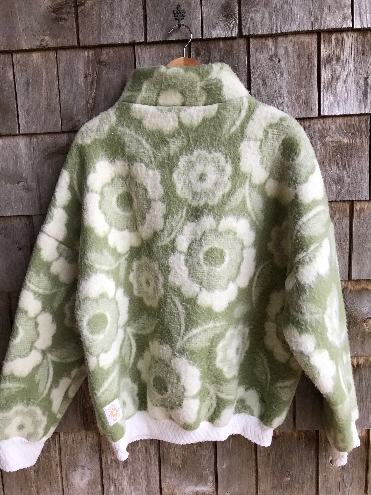 Pull à fermeture. Réalisé à partir de couvertures revalorisées