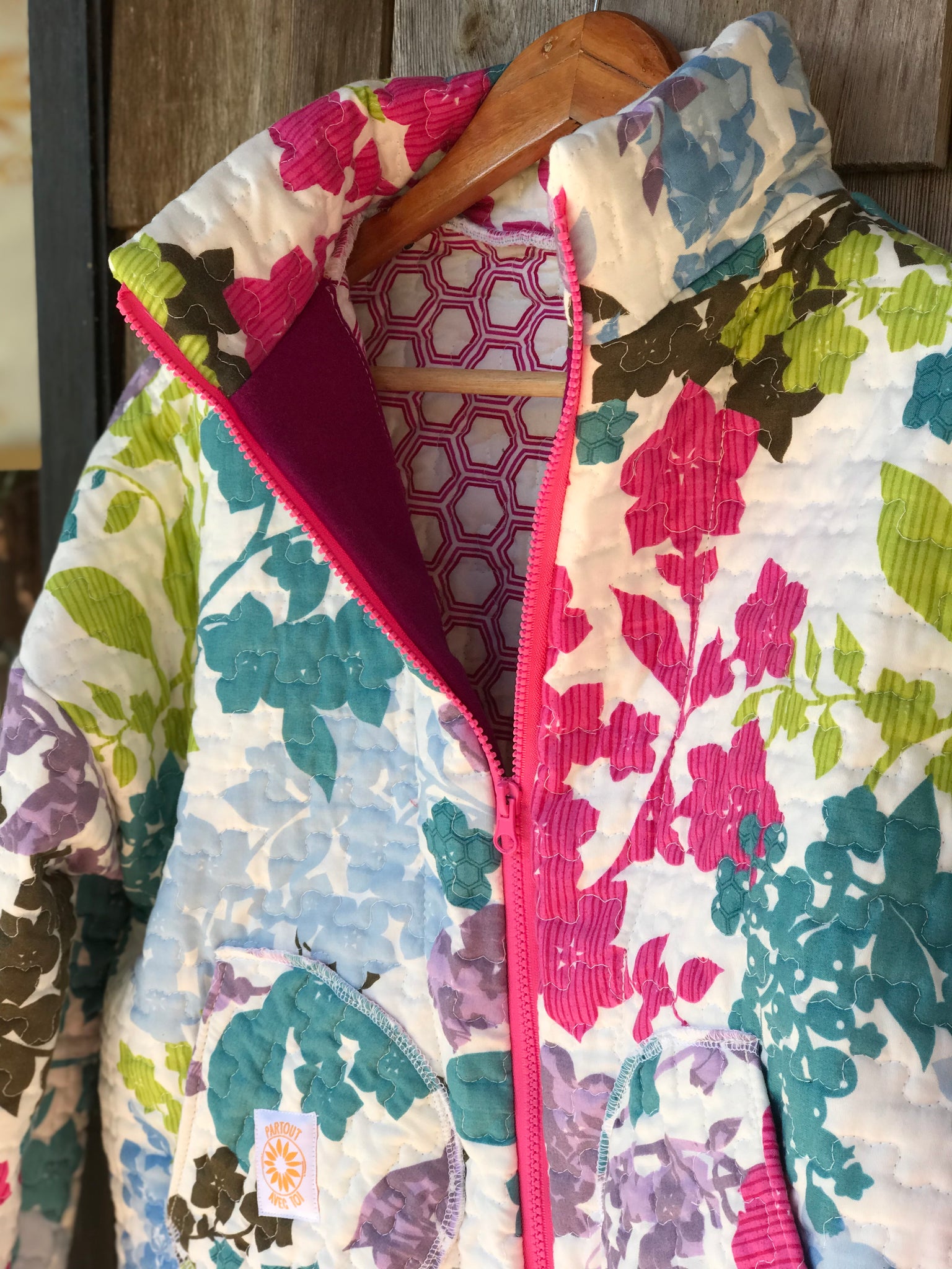 Veste à fermeture. Réalisée à partir d’une couverture revalorisée